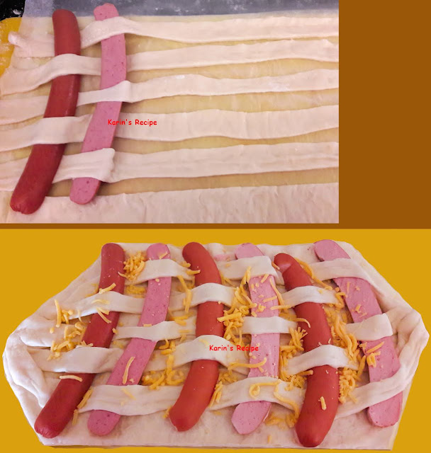 Some ideas on how you could wrapped the sausage in pizza dough sheet.
